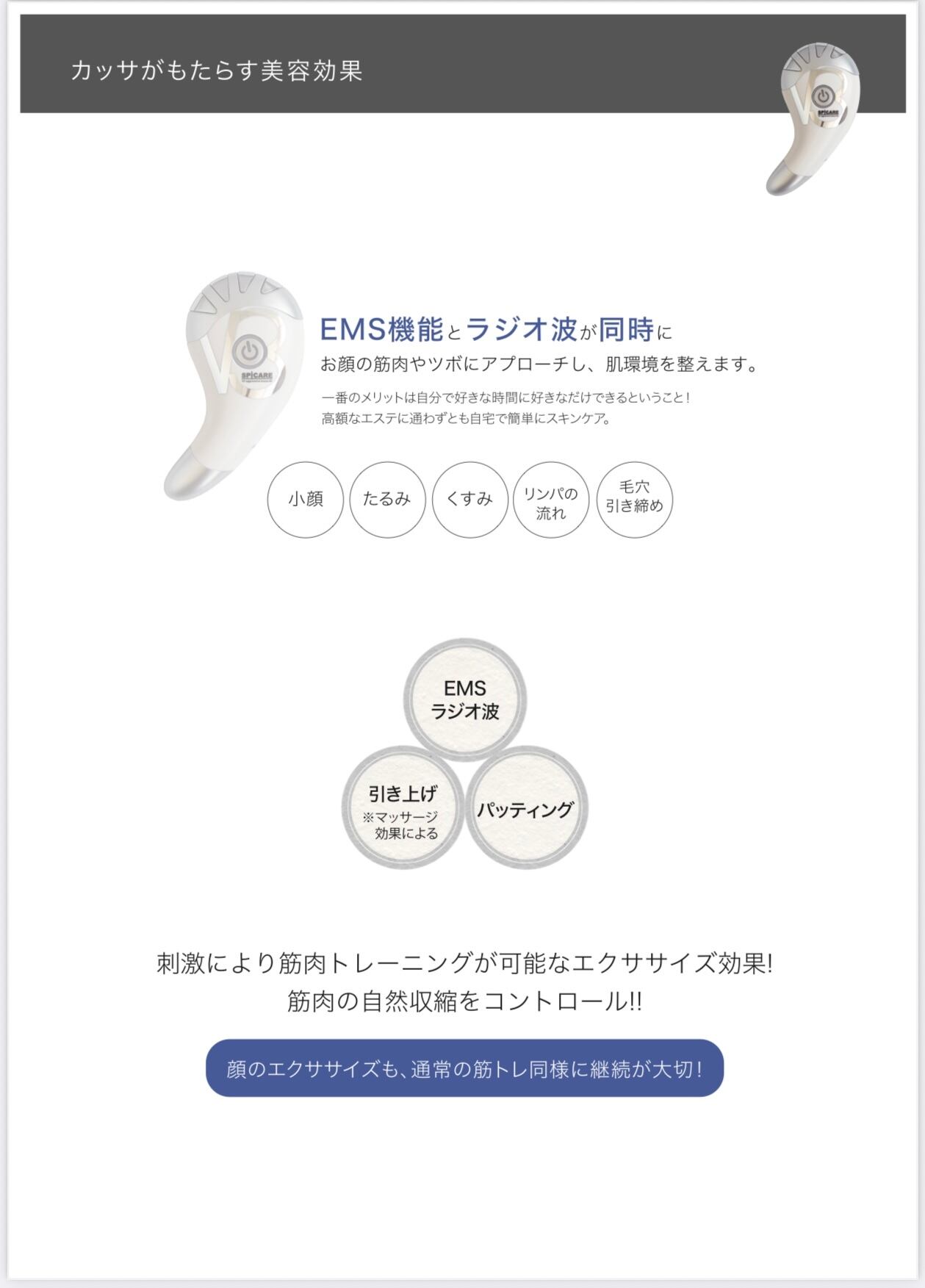 EMS機能とラジオ波が同時にお顔の筋肉やツボにアプローチし、肌環境を整えます。
