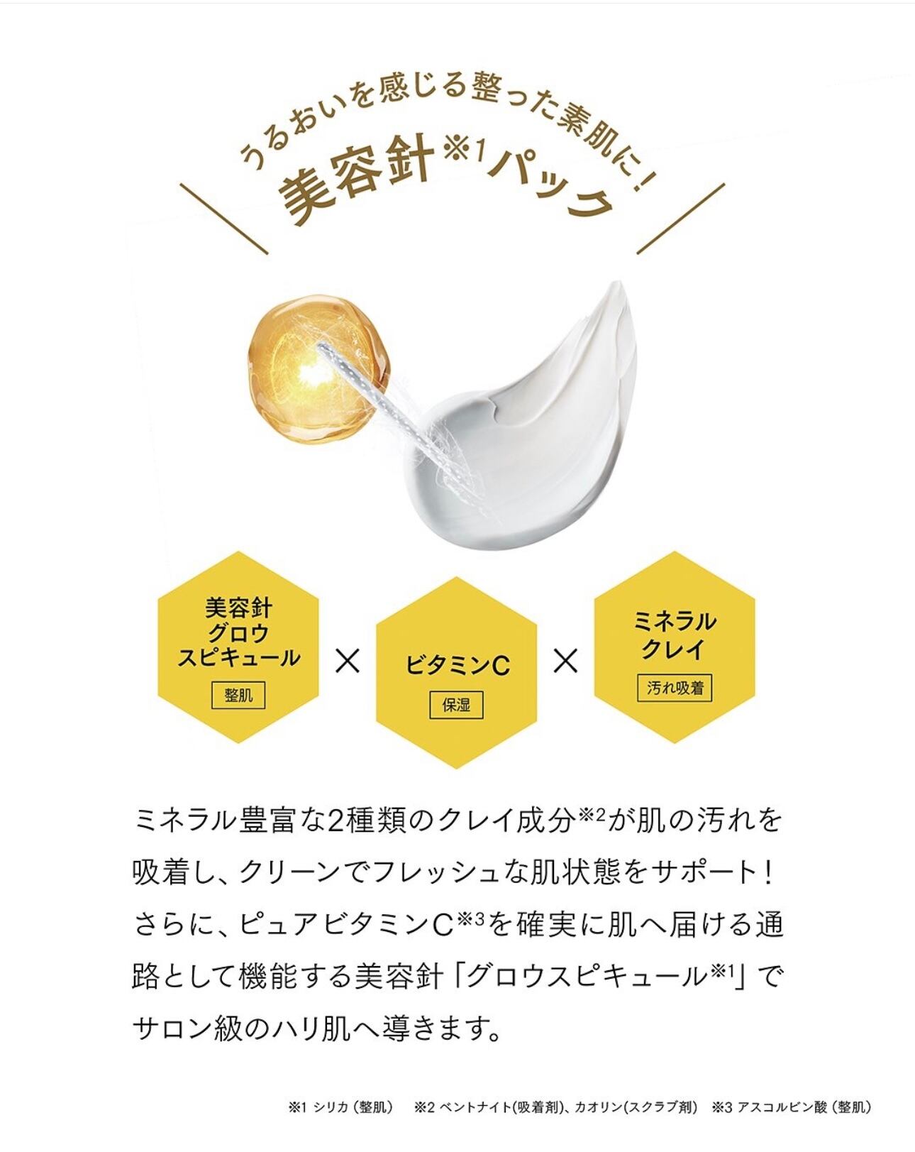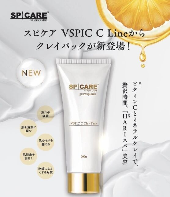 ビタミンC含有のグロウスピキュールとミネラル豊富なクレイ、保湿・整肌成分の植物由来エキス配合のクレイパックが新登場。